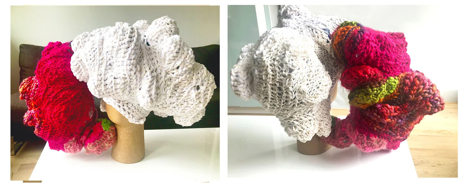 Brain Health. 2020, 16 x 22 x 13 inches, Yarn, mannequin Head, up-cycled plastic waste.